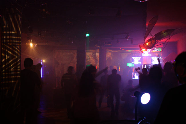 Dieses Bild zeigt eine Gruppe tanzender Menschen. Eine Lampe leuchtet auf den DJ. An diesem Abend war der Club zwar nicht voll, aber trotzdem lohnt sich ein Besuch. Zu finden in Bahnhofsnähe (hinter den Gleisen).